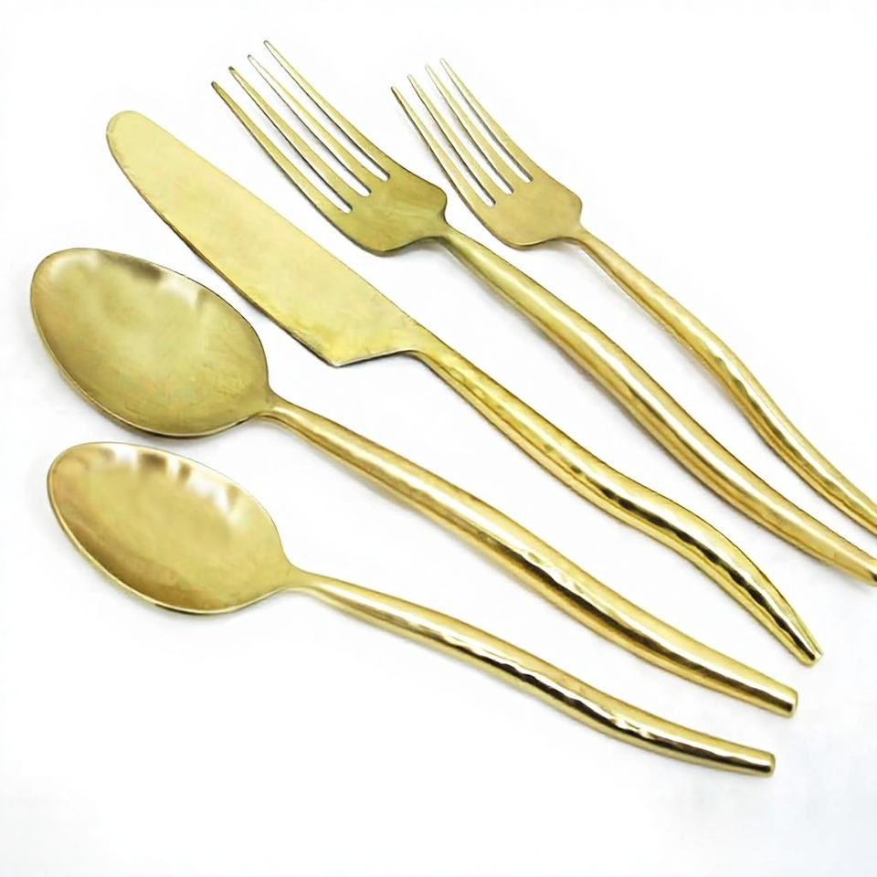ชุดช้อนส้อมสแตนเลสเคลือบทองด้านสุดหรูทันสมัย สำหรับโอกาสพิเศษ ของชำร่วยงานแต่งงาน ระดับพรีเมียม ดีไซน์หรูหราสำหรับการรับประทานอาหาร