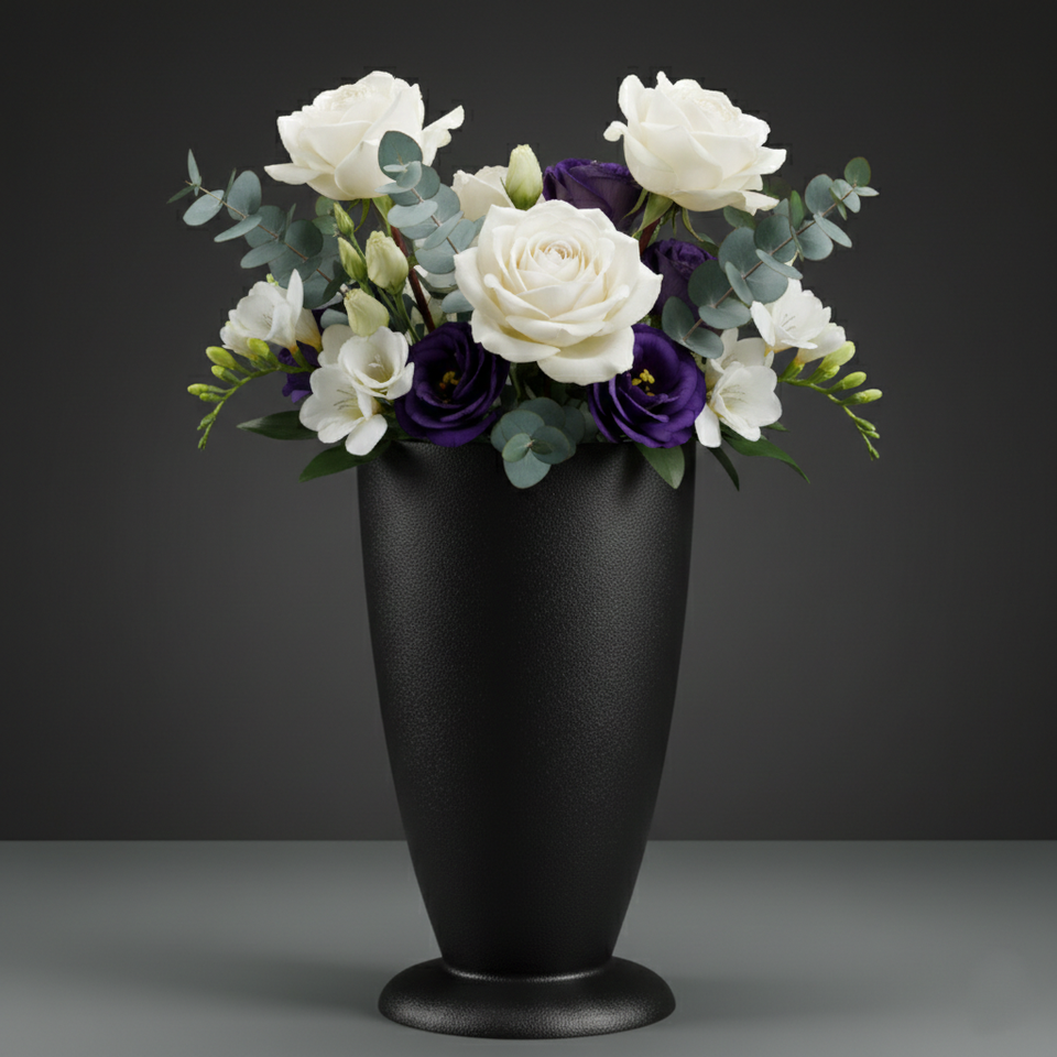 แจกันดอกไม้แบบพกพาทำมือจากอะลูมิเนียมหล่อสีดำด้านสุดหรู ผิวสัมผัสแบบทราย สไตล์นอร์ดิก ตกแต่งบ้านสมัยใหม่ แจกันตั้งโต๊ะ