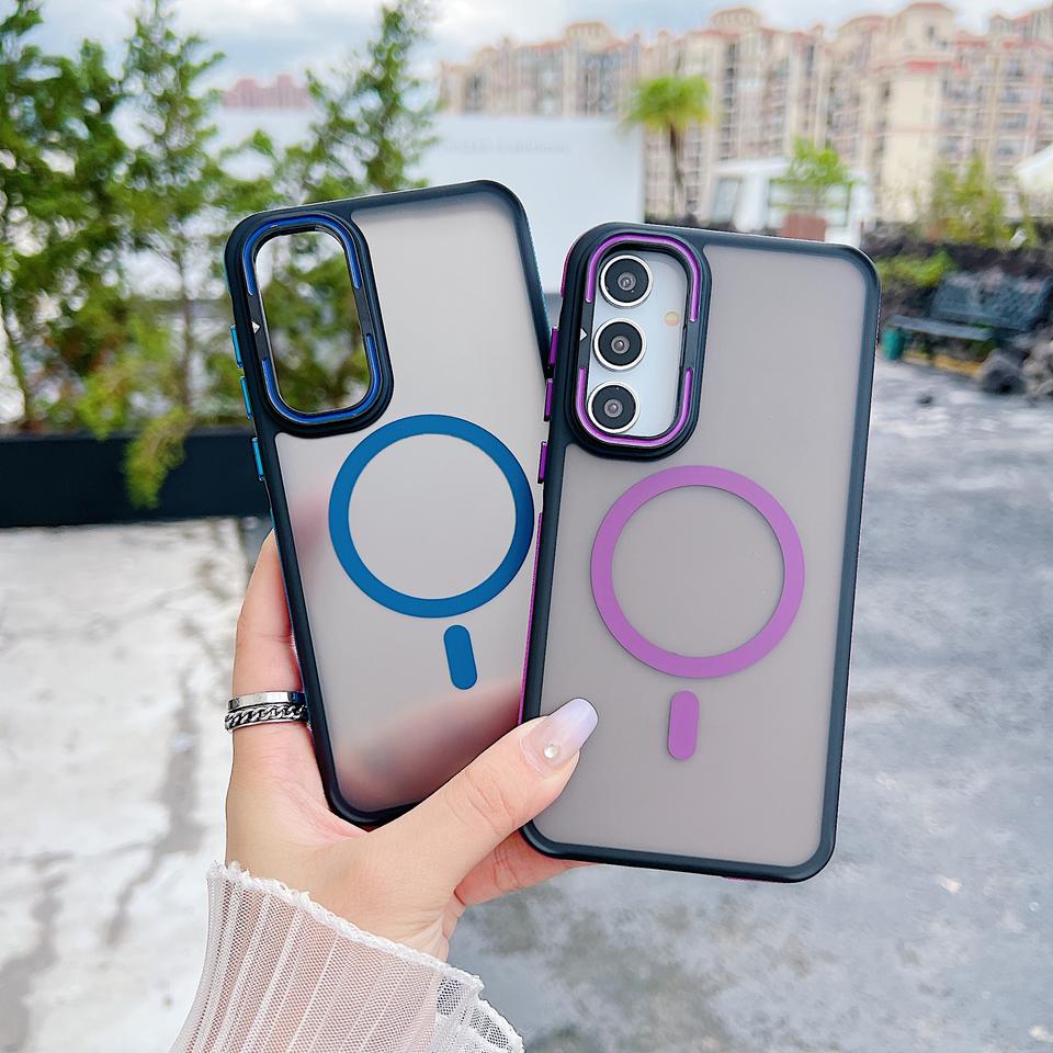 เคสโทรศัพท์แม่เหล็กสัมผัสนุ่มแบบด้านสุดหรูสำหรับ Samsung A55 A35 A25 พร้อมขาตั้งกล้อง ป้องกันการกระแทก ป้องกันการตก รองรับการชาร์จไร้สาย