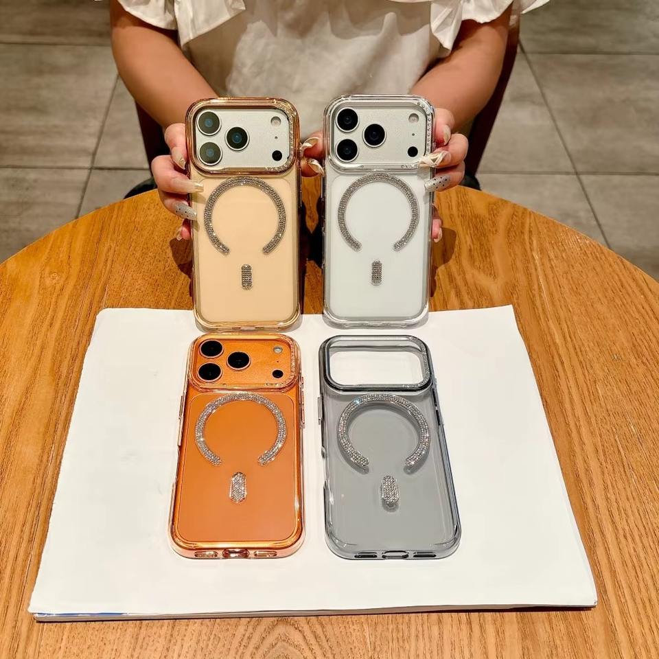 เคสแม่เหล็กแบบด้านหรูหรา โปร่งแสง ประดับกลิตเตอร์ สำหรับ iPhone 17 11 12 Pro Max 14 15 บางเฉียบ แข็งแรง ทนทาน วัสดุ PC อุปกรณ์เสริมแฟชั่น
