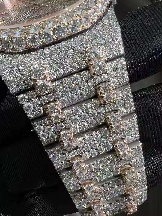 นาฬิกาอัตโนมัติสุดหรู สแตนเลส สไตล์ฮิปฮอป ประดับเพชรโมอิสซาไนต์ VVS ระดับพรีเมียม