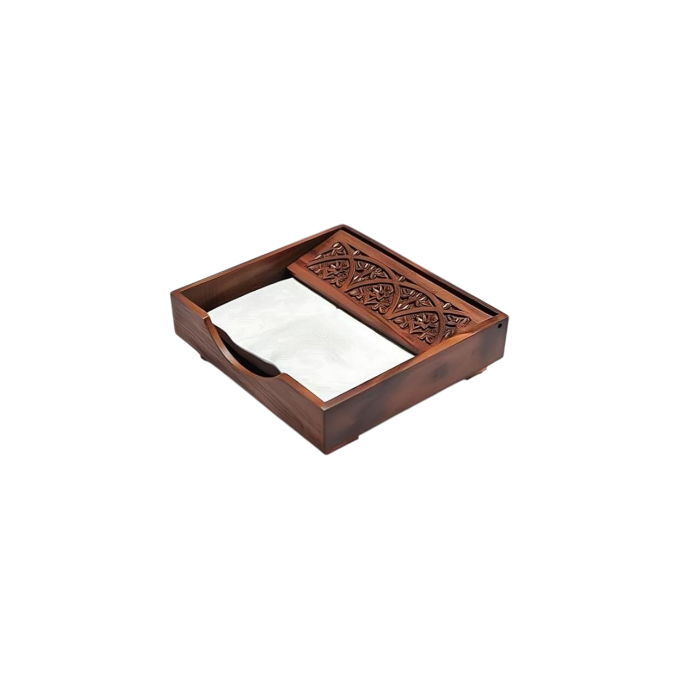 กล่องใส่กระดาษทิชชูไม้ลายมีนาคารีสุดหรู พร้อมแถบกดโลหะ | ที่ใส่ผ้าเช็ดปากลายชาติพันธุ์สำหรับตกแต่งบ้าน งานแต่งงาน และโรงแรม