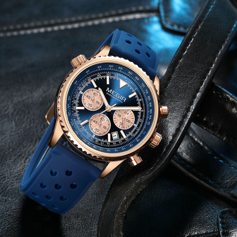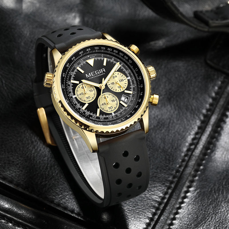 นาฬิกาควอตซ์ Megir รุ่น 2236 สไตล์หรูหราสำหรับผู้ชาย - กันน้ำ พร้อมฟังก์ชันโครโนกราฟ สายรัดข้อมือ ผลิตในประเทศจีน
