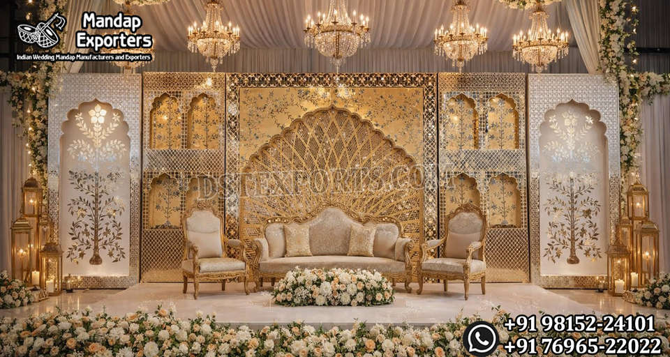กรอบไม้เมห์รากาสุดหรูสำหรับตกแต่งเวทีแต่งงาน