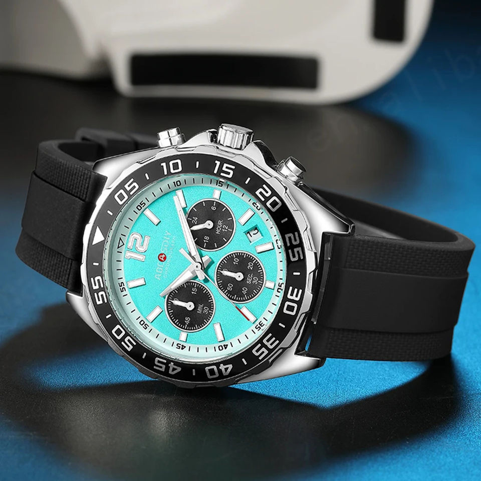 นาฬิกาสแตนเลสสตีลสำหรับผู้ชายนาฬิกาโครโนกราฟแบบเรียบง่ายทรงสี่เหลี่ยมกลไกสุดหรู aocasdiy