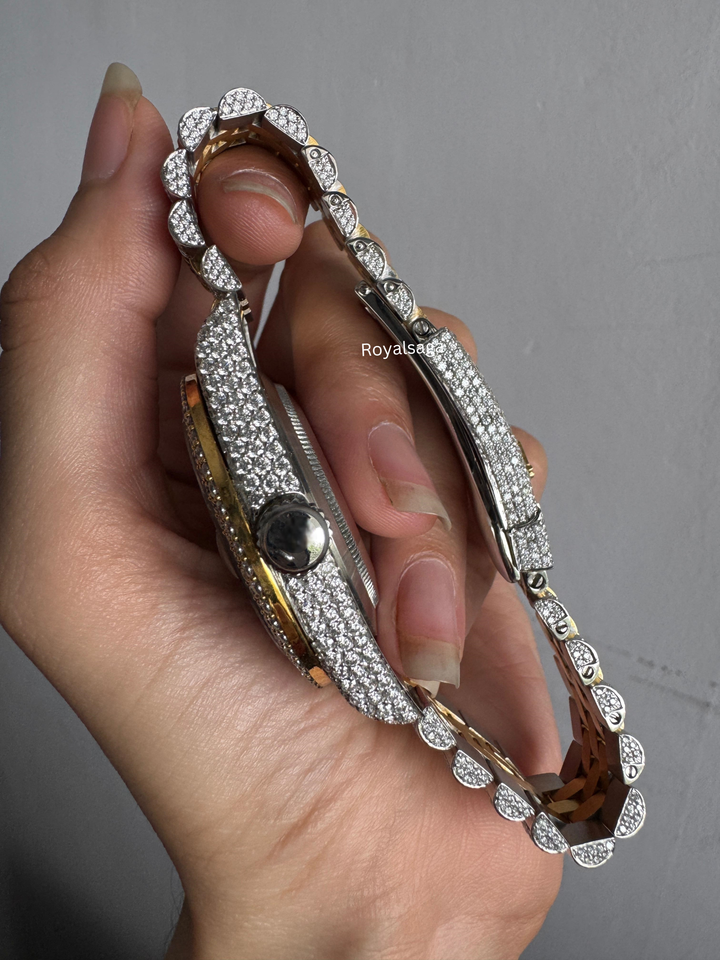 นาฬิกาข้อมือมอยส์ซอไนต์สำหรับผู้ชายสุดหรูหน้าปัด904L สแตนเลสปรับแต่งดีไซน์นาฬิกาเพชรสองสี