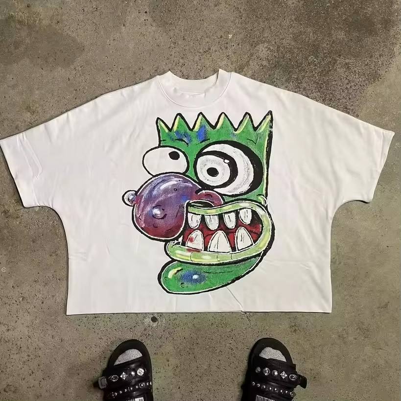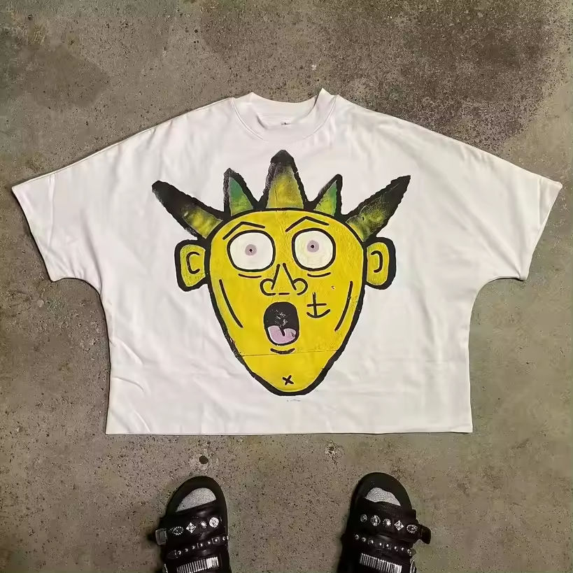 เสื้อผ้าฝ้าย100% ของผู้ชายสุดหรูเสื้อยืดครอปลายกราฟิกเสื้อผ้าแนวสตรีทพิมพ์ลาย Y2K ทรงพอดีตัวมาก