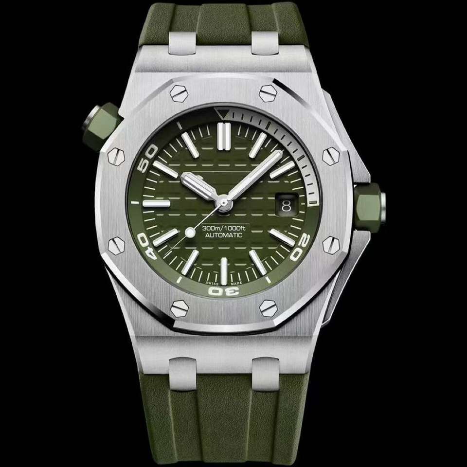 นาฬิกาเหล็ก316L ของผู้ชายหรูหราขนาด42มม. สายหนังกันน้ำ100ม. สไตล์สปอร์ตอัตโนมัติหน้าจอแสดงวันที่