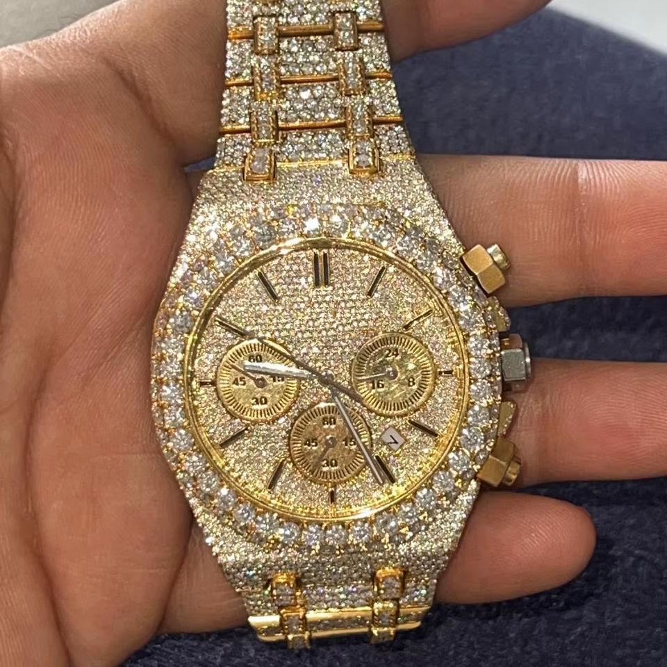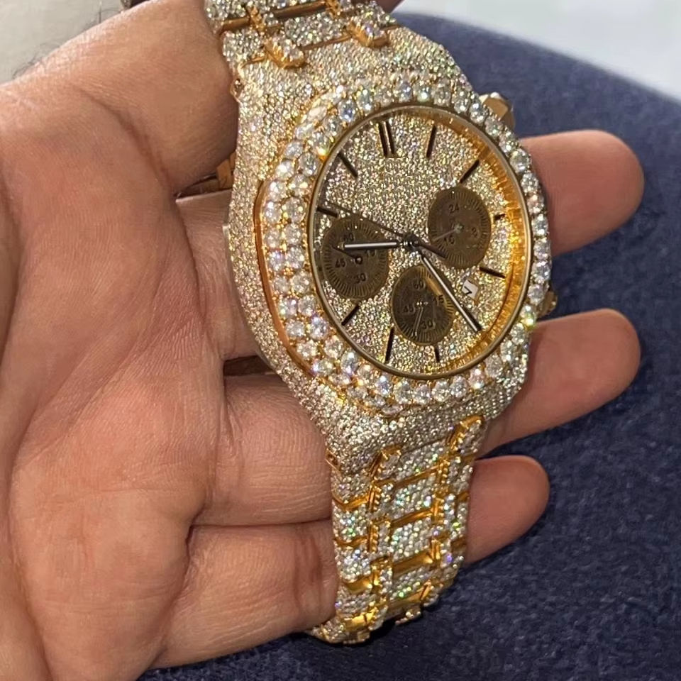 Luxury Men's Fully Iced Rose Tone Mechanical Watch Hip Hop Style Moissanite Diamond Stainless Steel Band Glass Mechanical