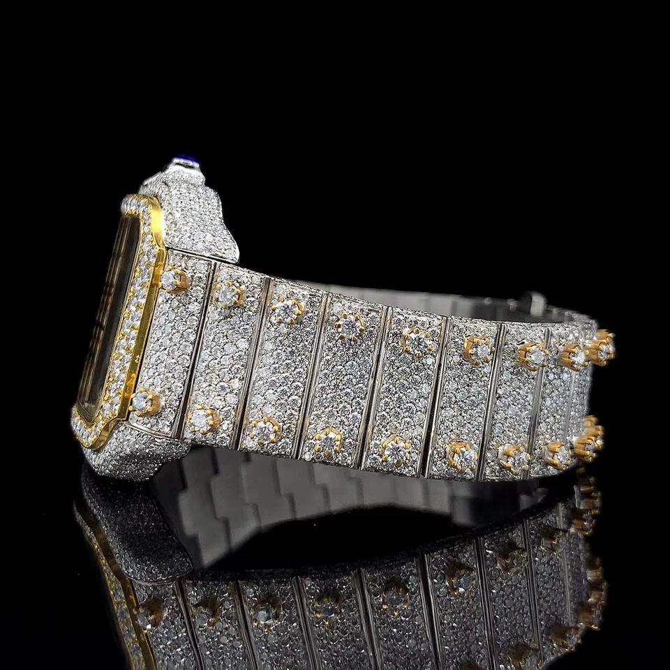 นาฬิกาข้อมือผู้ชายสุดหรู ดีไซน์คลาสสิก หน้าปัดประดับเพชรเต็มหน้าปัด ตัวเลขโรมัน ขอบตัวเรือนสีทอง ระบบควอตซ์ สไตล์ไอซ์ รุ่นลิมิเต็ด
