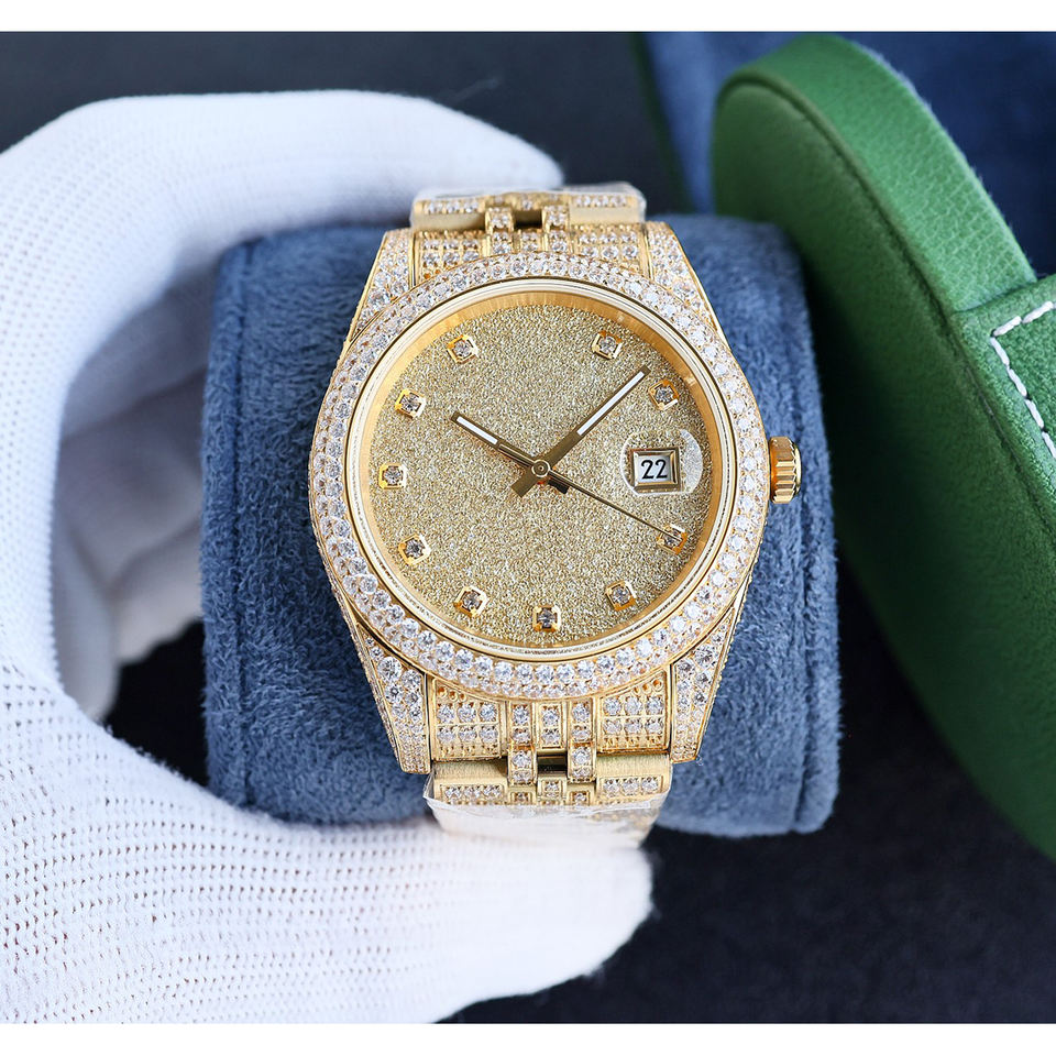 นาฬิกาข้อมือผู้ชายดีไซน์หรูหรา สแตนเลสสตีล ประดับเพชรโมอิสซาไนต์ เรืองแสง พร้อมปฏิทิน แสดงพลังงานสำรอง สไตล์สั่งทำพิเศษ สำหรับธุรกิจและลำลอง