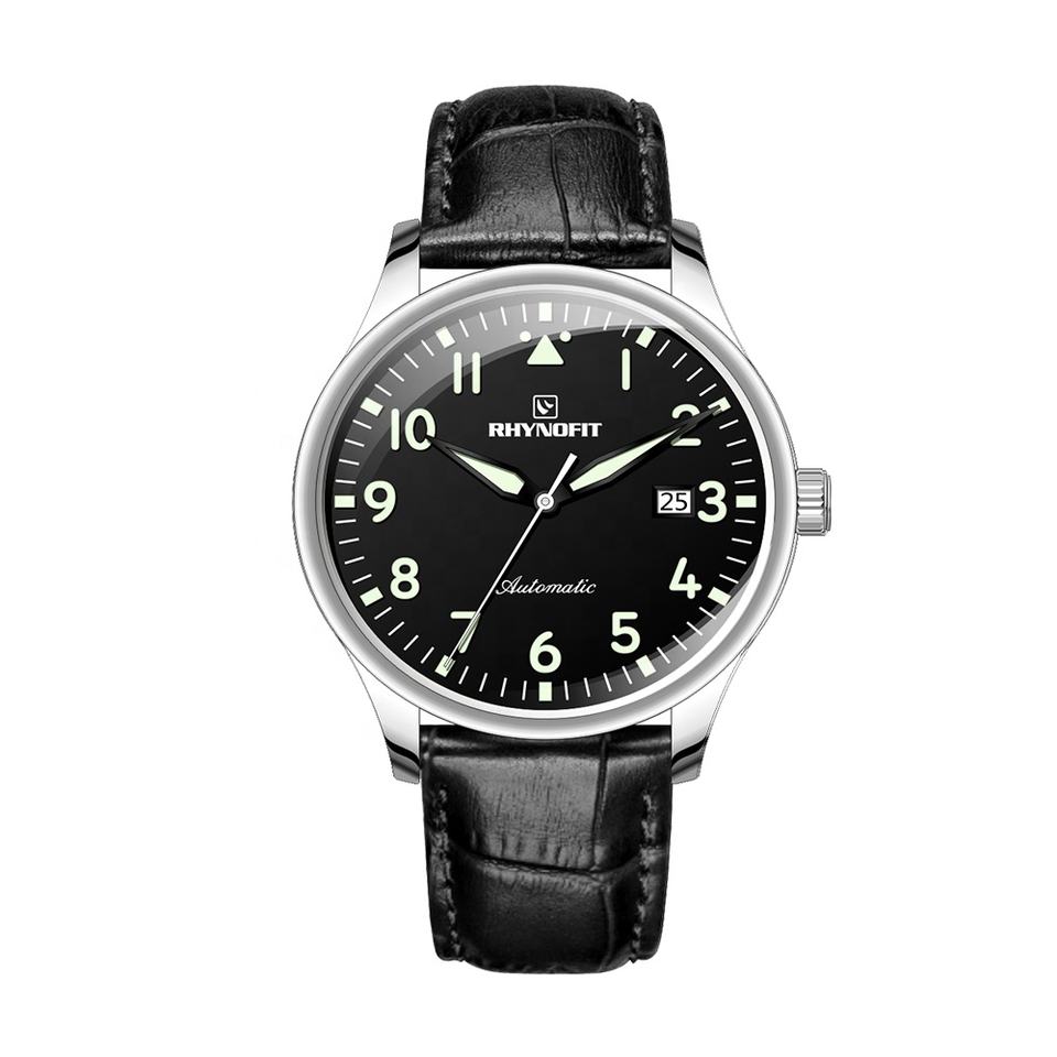 นาฬิกาดำน้ำผู้ชายสุดหรู เรืองแสง ออโตเมติก แสดงวันที่ สายหนังแท้ พร้อมกลไก ETA 2824 หน้าปัดเรียบง่าย