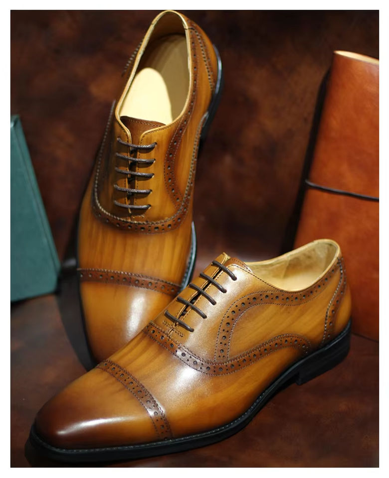 รองเท้าหนังแท้สำหรับผู้ชายสุดหรู - รองเท้าเดอร์บี้แบบทางการ พื้นรองเท้าด้านในนุ่มสบายและซับในระบายอากาศได้ดีเพื่อความสบายตลอดวัน