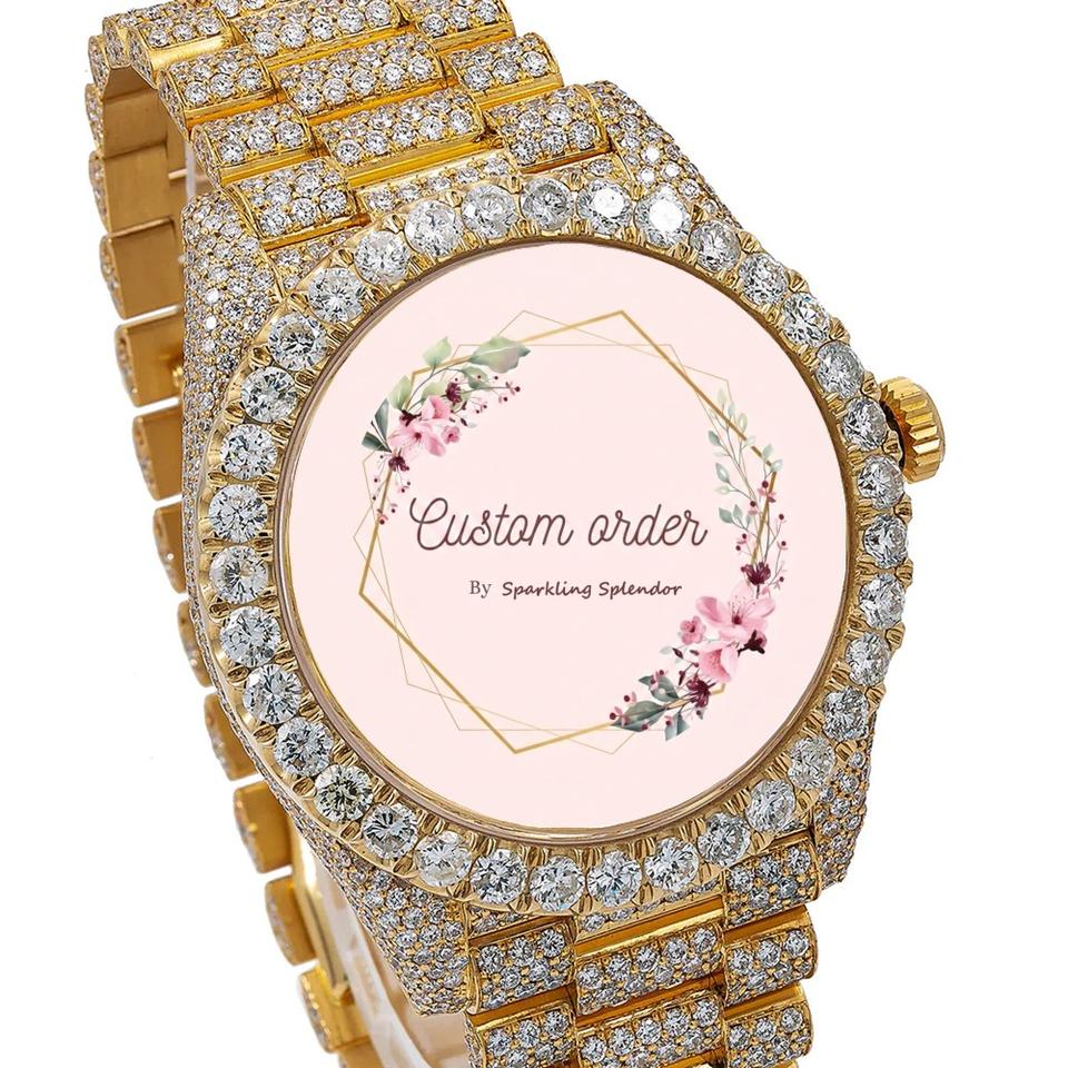 นาฬิกาข้อมือผู้ชายสุดหรู ประดับเพชรโมอิสซาไนต์เต็มเรือน ตัวเรือนสแตนเลสสตีล พรีเมียม แฟชั่นฮิปฮอป ระบบกลไก สายขนาด 20 มม. ชุบสีเหลือง