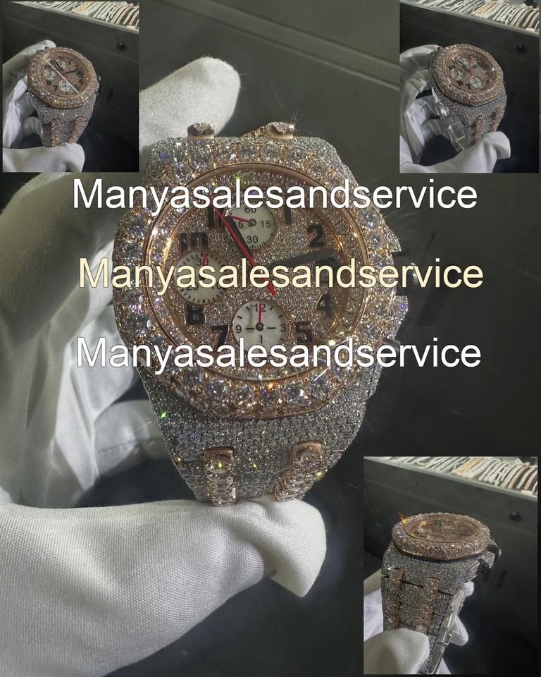 นาฬิกาข้อมือผู้ชายสุดหรู สายสแตนเลสสตีล ฝังเพชรโมอิสซาไนต์เต็มเรือน ระบบออโตเมติก พร้อมตัวล็อคแบบกระจก