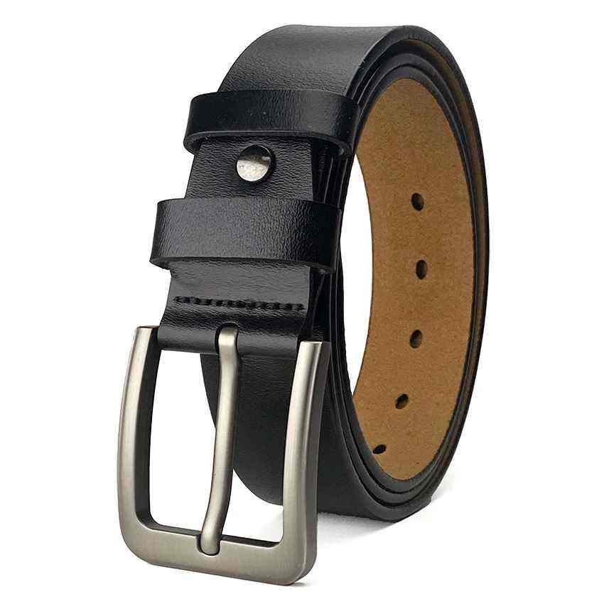 เข็มขัดหนังผู้ชายหรูหราสำหรับธุรกิจตะวันตกสไตล์คาวบอยลำลองดีไซน์เรียบง่ายหัวเข็มขัดโลหะผสมออกแบบได้เองสำหรับให้เป็นของขวัญ