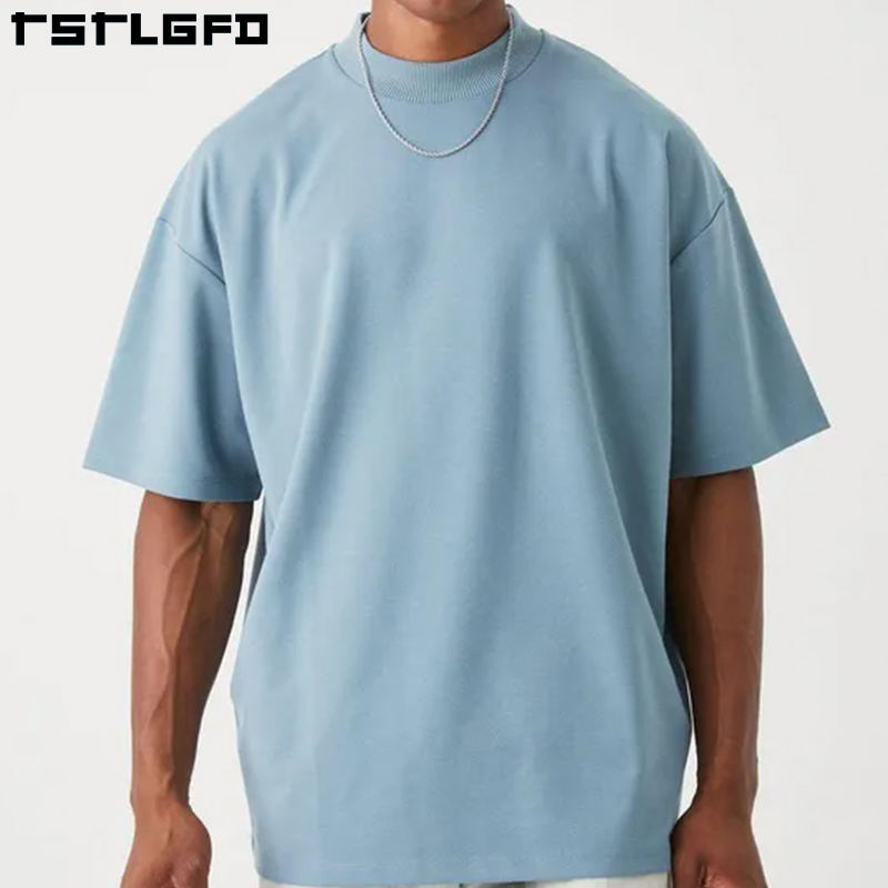 เสื้อยืดผ้าฝ้ายออร์แกนิคของผู้ชายสุดหรูเสื้อยืด280GSM โอเวอร์ไซส์ผ้าริบคอลปล่อยไหล่ตามสั่ง