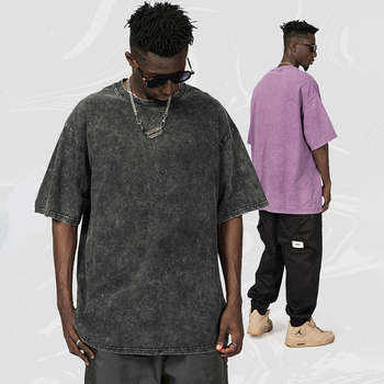 เสื้อยืดแขนสั้นผู้ชายไซส์ใหญ่พิเศษ ทรงหลวม ไหล่ตก ผ้าฝ้าย 100% คุณภาพสูง สไตล์สตรีทแวร์ พิมพ์ลายได้ตามสั่ง
