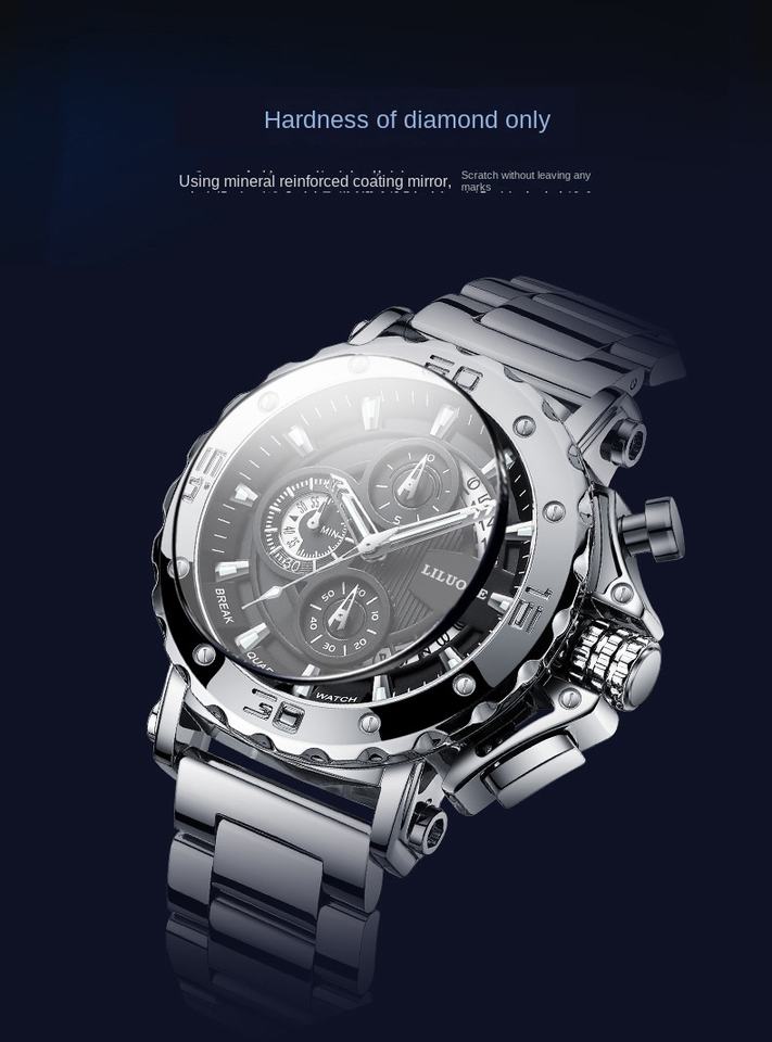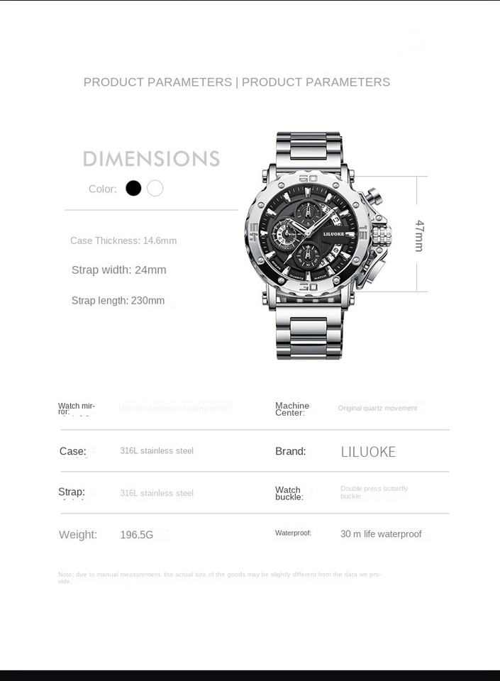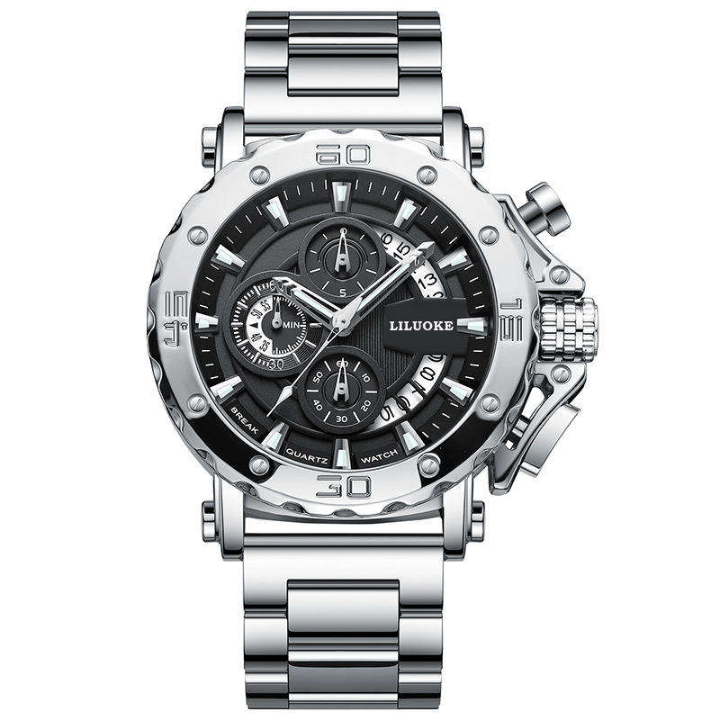 นาฬิกาควอตซ์ผู้ชายสุดหรู LILUOKE 9011G สายสแตนเลสกันน้ำ 3 เข็มเรืองแสง โครโนกราฟ สปอร์ต เรียบง่าย สไตล์ธุรกิจ