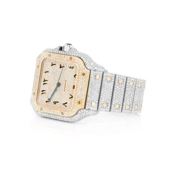 นาฬิกาควอตซ์ผู้ชายสุดหรู ตัวเรือนสแตนเลสสตีล เครื่อง ETA ประดับเพชรโมอิสซาไนต์ระยิบระยับ สายหนัง สไตล์ฮิปฮอป วินเทจ ขนาด 5 มม. 40 มม.