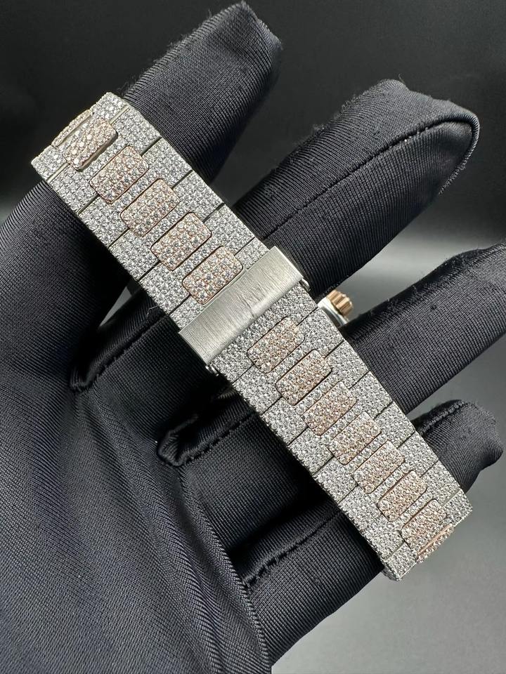 นาฬิกาข้อมือผู้ชายสุดหรู สแตนเลสสตีล ฮิปฮอป ประดับเพชรโมอิสซาไนต์ VVS แบบเต็มหน้าปัด ดีไซน์ทันสมัย สายควอตซ์ ขนาด 22 มม.