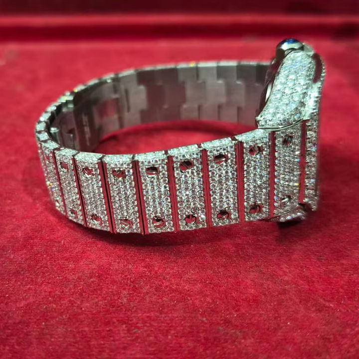 นาฬิกาข้อมือผู้ชายสุดหรู สแตนเลสสตีล VS มอยส์ซาไนต์ หน้าปัดสไตล์ฮิปฮอป ดีไซน์โบราณ สายหนังขนาด 10 มม. สำหรับธุรกิจ ใช้กระจกแซฟไฟร์ ETA