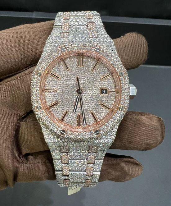 นาฬิกาข้อมือผู้ชายสุดหรู สแตนเลสสตีล ขนาด 42 มม. หน้าปัดคริสตัล ประดับเพชรเต็มหน้าปัด กันน้ำ 10 บาร์