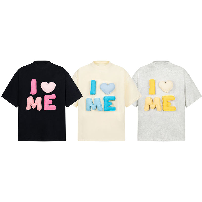 Luxury Men's T-Shirt 100% Cotton Knitted 250 Gsm Oversized Heavy Weight Embroidered 3D Street Style Heart Shaped Pattern Puff