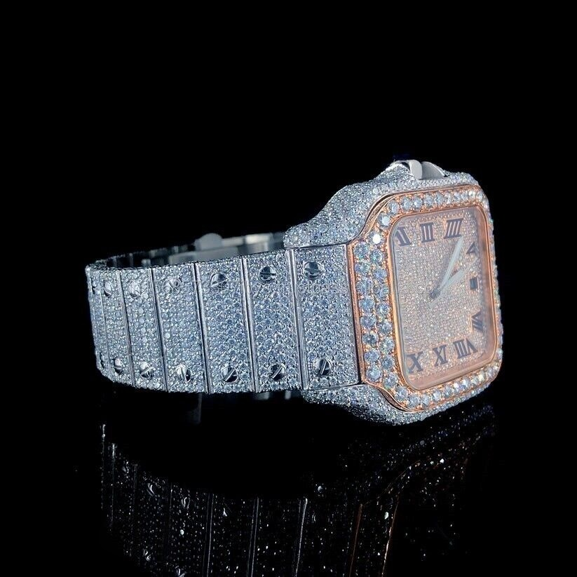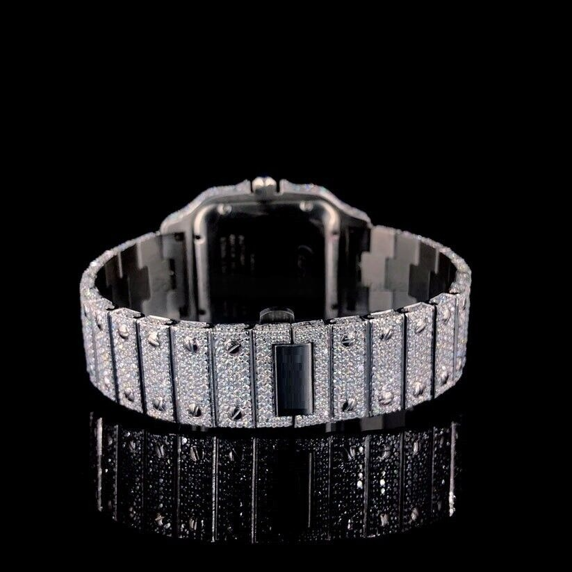 นาฬิกาข้อมือทรงรีและทรงเหลี่ยมสำหรับผู้ชายและผู้หญิง ดีไซน์หรูหรา สไตล์ฮิปฮอป ประดับเพชรแท้และมอสซาไนต์ สายสแตนเลส หน้าปัดอนาล็อก