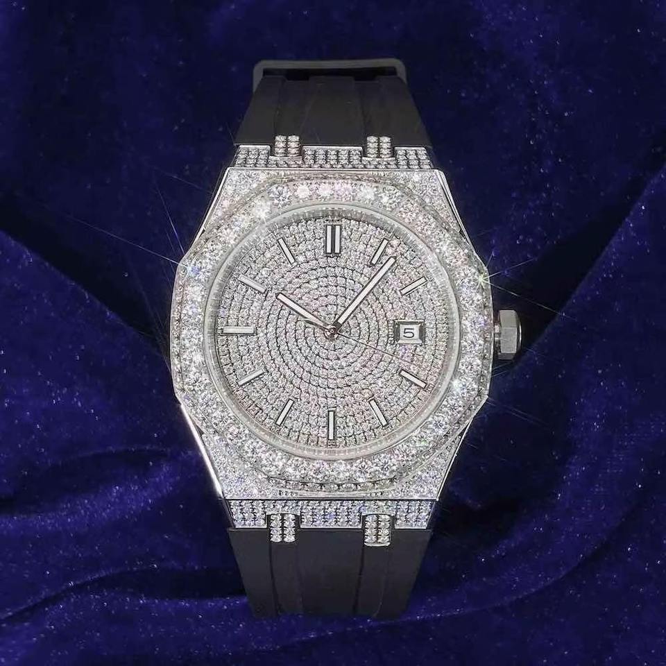 นาฬิกาข้อมือผู้ชายสุดหรู ประดับเพชรโมอิสซาไนต์ ชุบทองคำขาว 14K กันน้ำ ดีไซน์โดดเด่น นาฬิกาโมอิสซาไนต์สำหรับผู้ชาย
