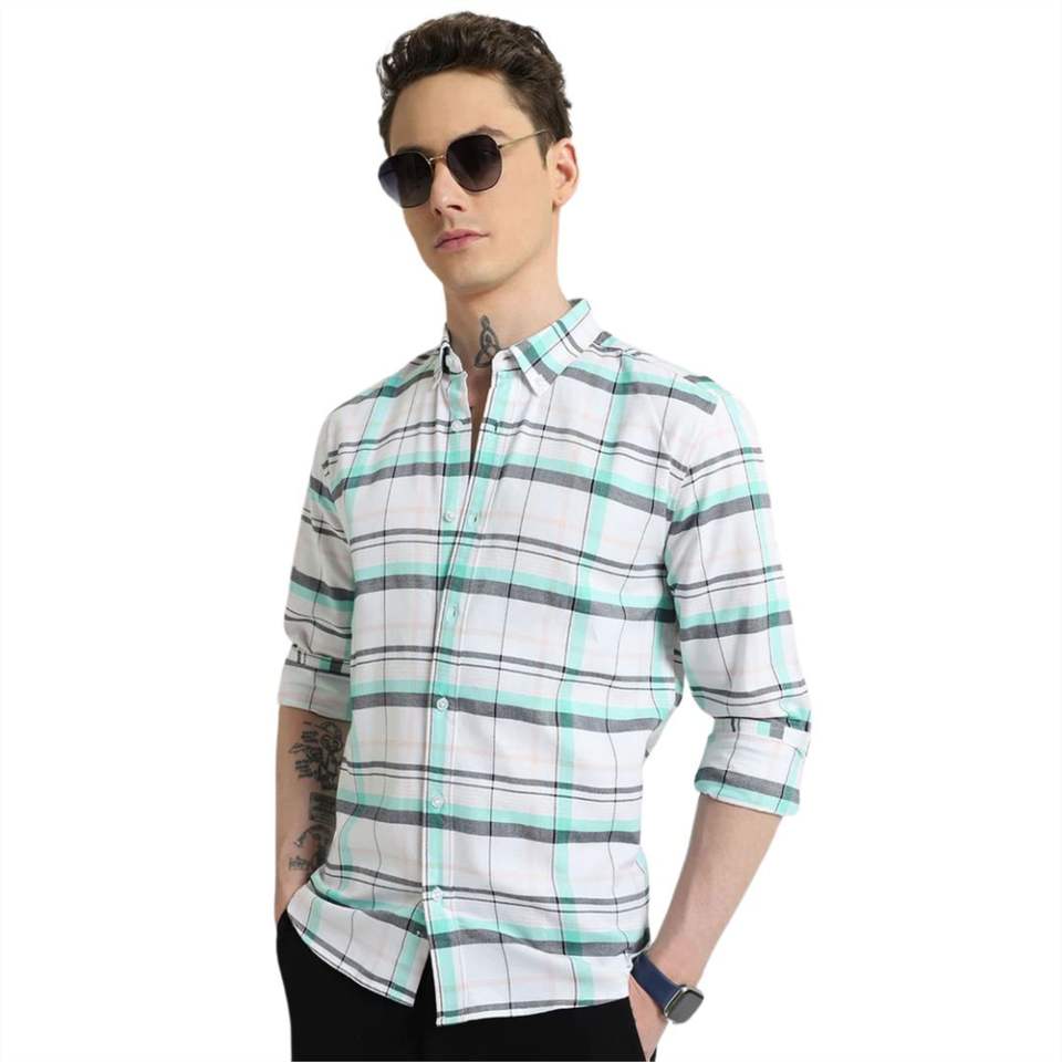 เสื้อเชิ้ตผ้าคอตตอนสำหรับสุภาพบุรุษสุดหรูกระดุมระดับพรีเมียมพร้อมรูปแบบการตรวจสอบที่โดดเด่นสำหรับสไตล์อเนกประสงค์ที่ซับซ้อน