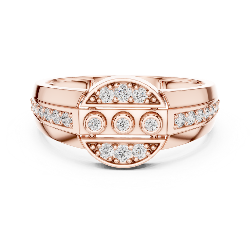 แหวนผู้ชายดีไซน์หรูหราประดับเพชร ชุบทอง 14k สีโรสโกลด์ ประดับโมอิสซาไนต์ทรงเรขาคณิตแบบวงแหวน งานสั่งทำพิเศษ ขายส่ง