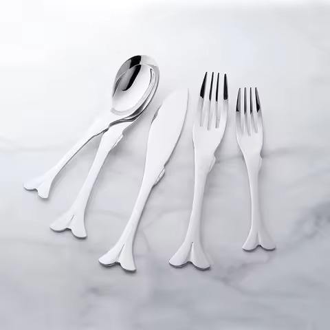 ชุดช้อนส้อมมีดโลหะหรูหรา ชุดอุปกรณ์รับประทานอาหาร ชุดช้อนส้อมมีดแบบมีด้ามจับ ดีไซน์ทันสมัย คอลเลคชั่นอุปกรณ์ครัว