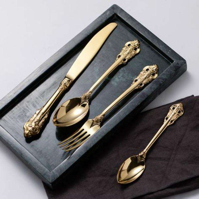 ชุดช้อนส้อมโลหะหรูหราสำหรับจัดโต๊ะอาหารอย่างมีระดับ สร้างประสบการณ์การรับประทานอาหารที่ประณีตด้วยดีไซน์ขัดเงา