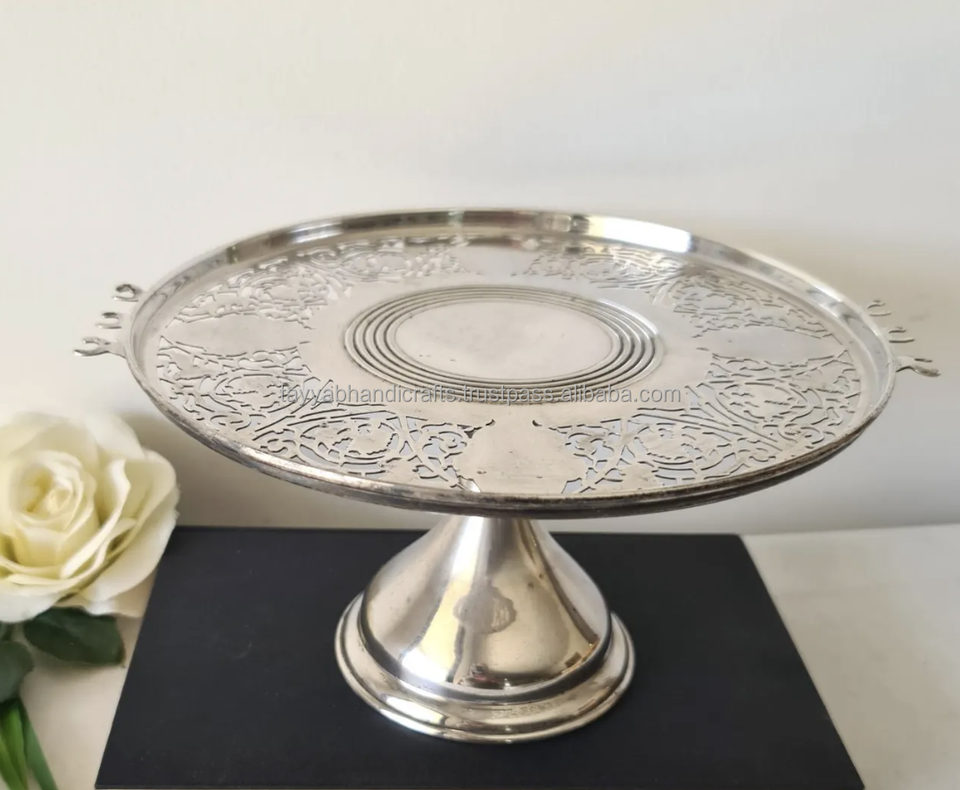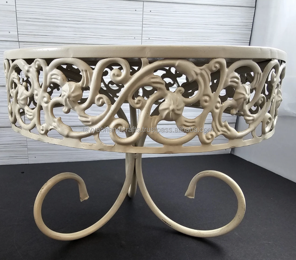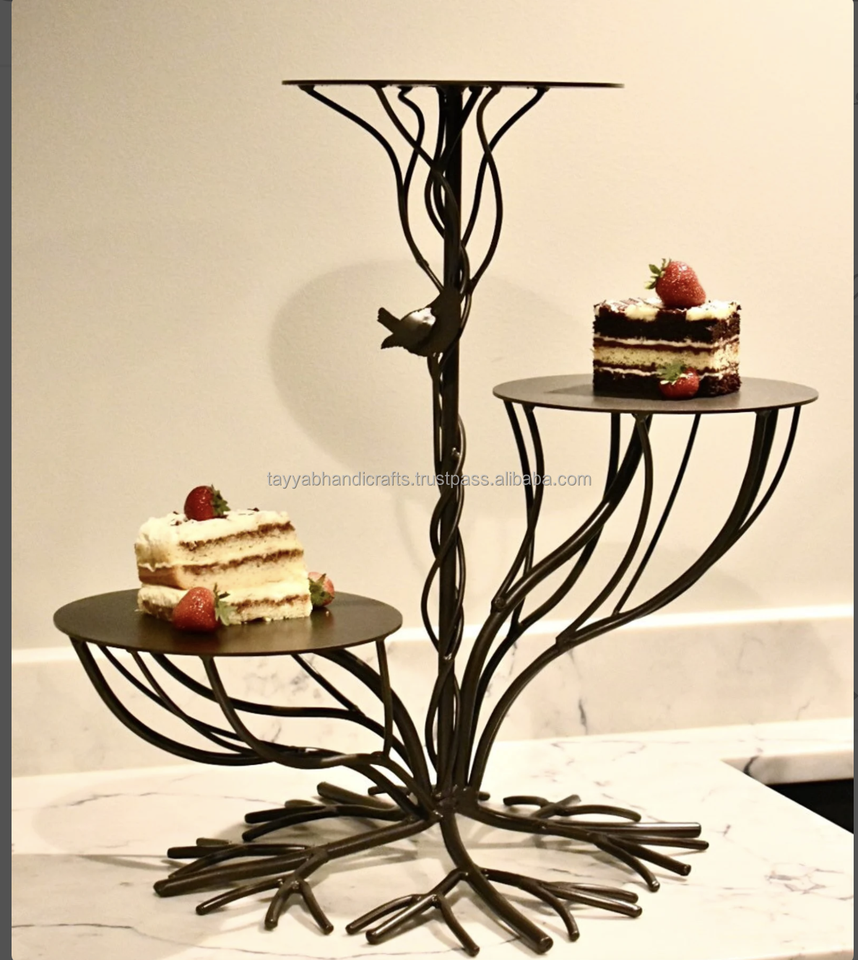 ขาตั้งเค้กโลหะหรูหราสีทองพร้อมคริสตัลสำหรับวางขนมเค้กและของหวานจากอินเดีย