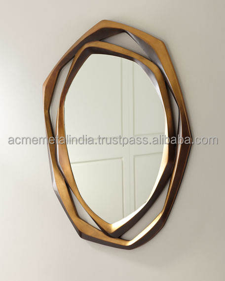 กระจกโลหะติดผนังสุดหรูชุบทองพร้อมดีไซน์ทรงกลมและสี่เหลี่ยมเหมาะสำหรับตกแต่งบ้านอย่างมีสไตล์