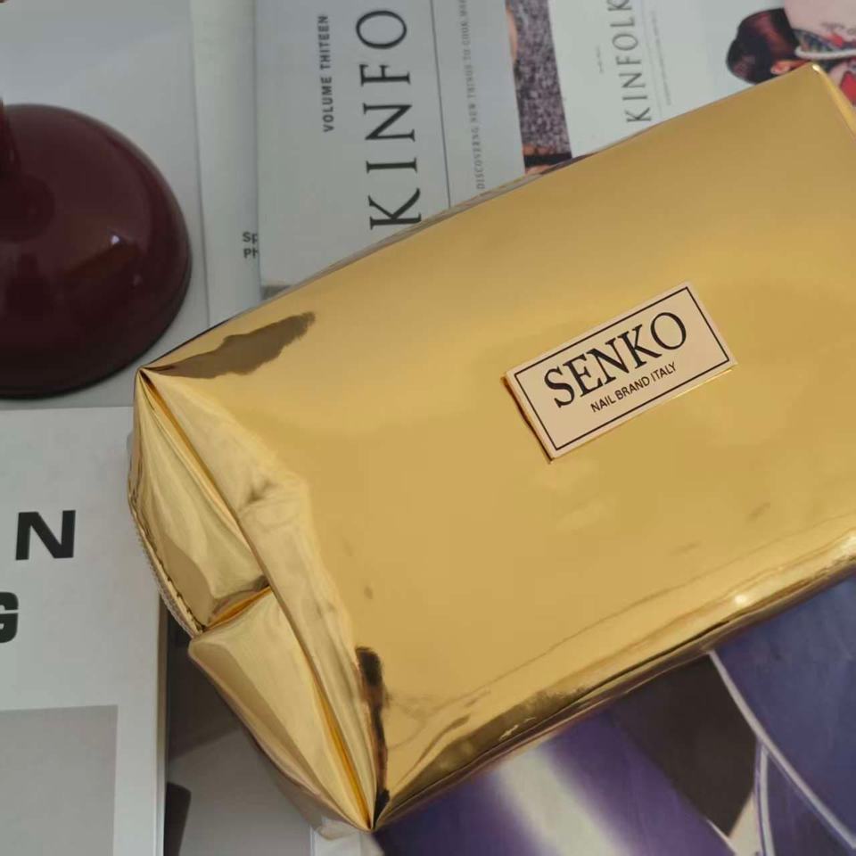 กระเป๋าเครื่องสำอางหนัง PU สีทองเมทัลลิคสุดหรูกระเป๋าเดินทางกันน้ำแผ่นโลหะขนาด8นิ้ว