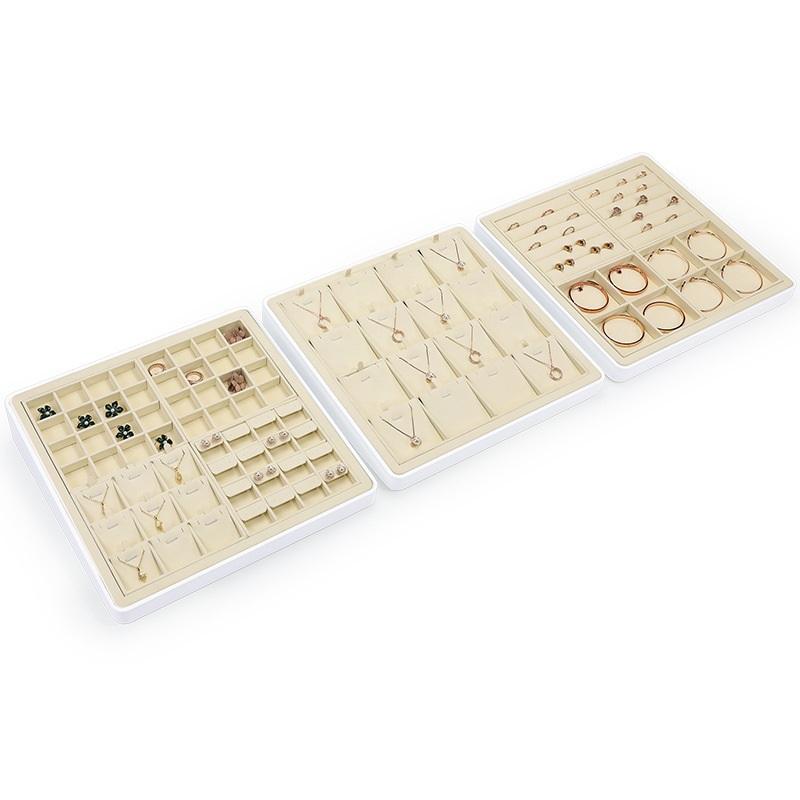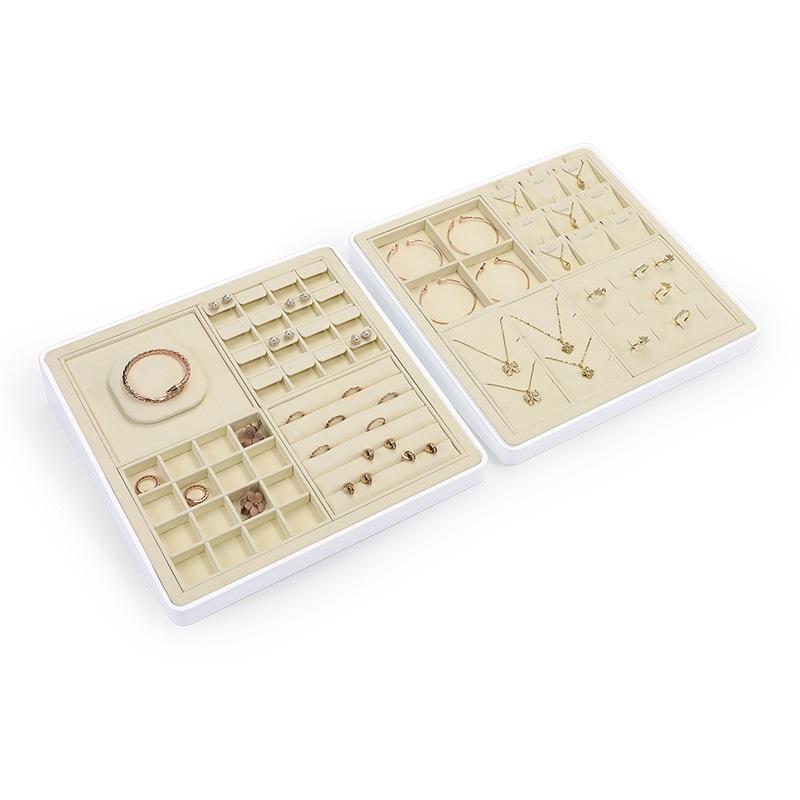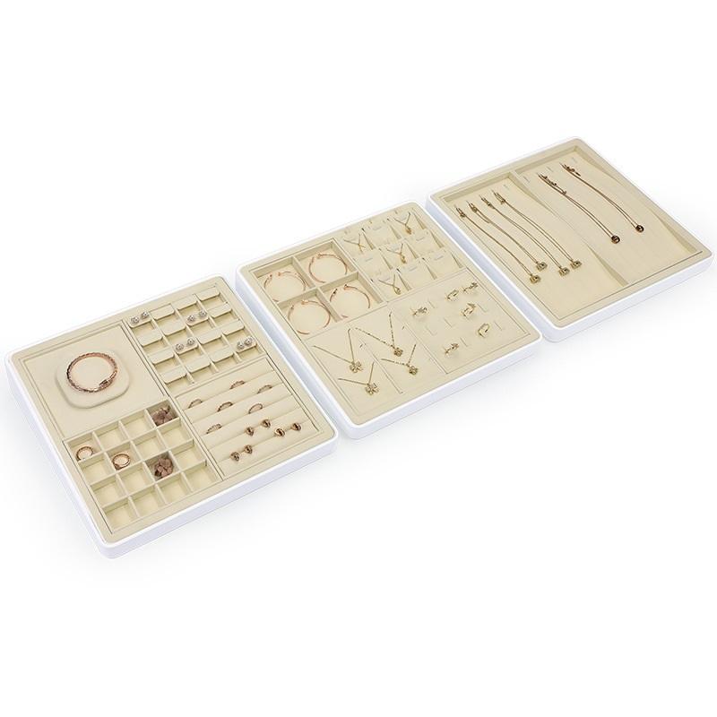 ชุดแท่นโชว์เครื่องประดับโลหะไมโครไฟเบอร์สุดหรูถาดโชว์เครื่องประดับหรูหราและอุปกรณ์เสริมชั้นวาง