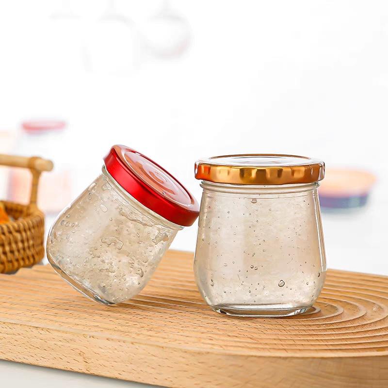 ขวดโหลทรงพุดดิ้งทรงรังนกขนาดเล็กสุดหรูขนาด1ออนซ์-16ออนซ์ขวดแก้วใส่โยเกิร์ตเยลลี่โลหะขนาด75มล. 380มล.