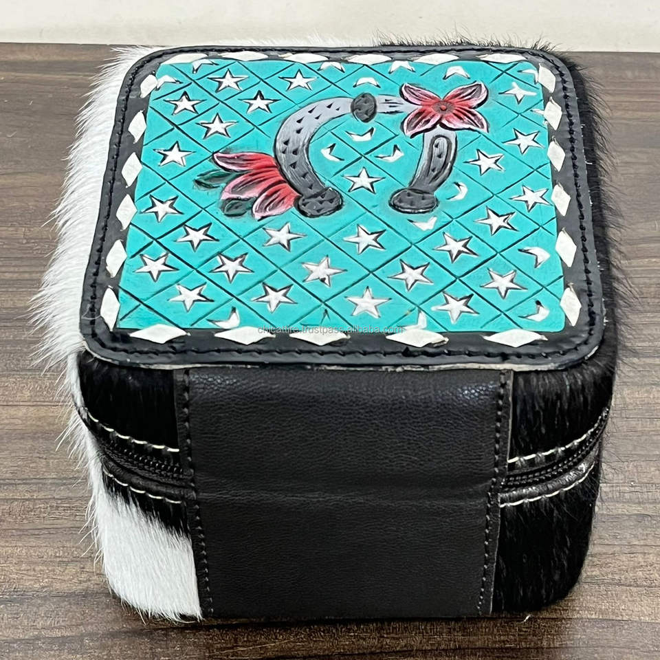 กล่องใส่เครื่องประดับหนังวัวแท้แบบพกพาขนาดเล็กสุดหรู งานฝีมือใหม่ วาดลายด้วยมือ รูปทรงสี่เหลี่ยมน่ารัก สำหรับผู้หญิง