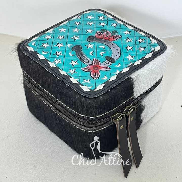 กล่องเก็บเครื่องประดับหนังวัวแท้ ทำสีด้วยมือ