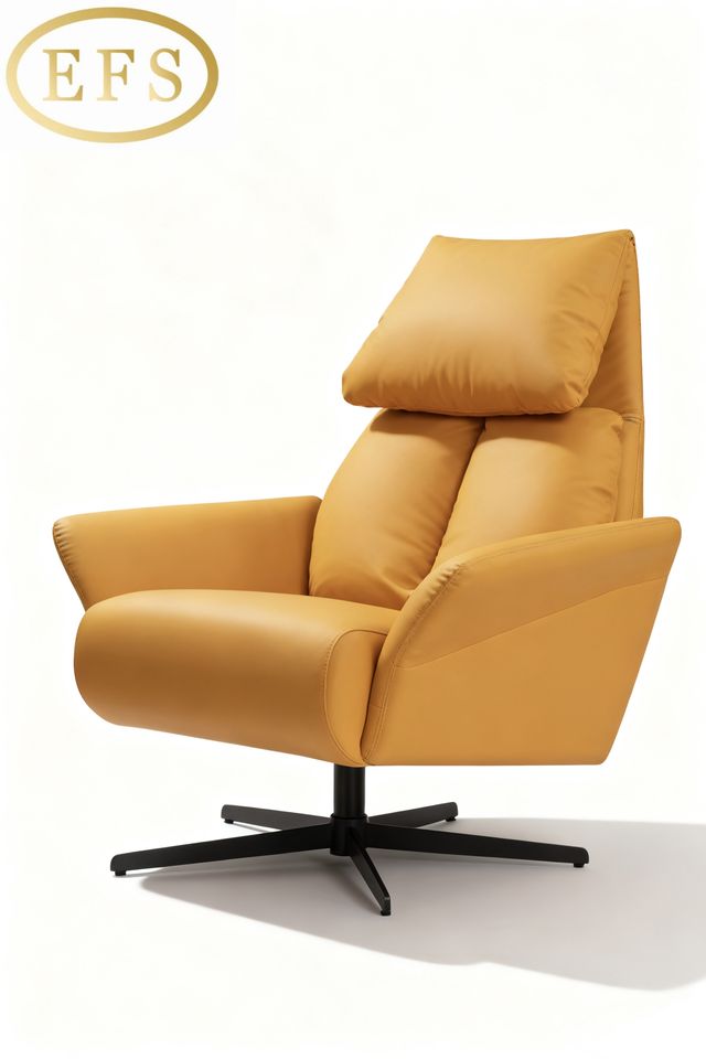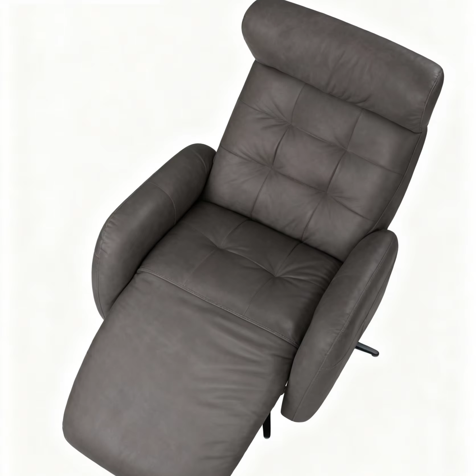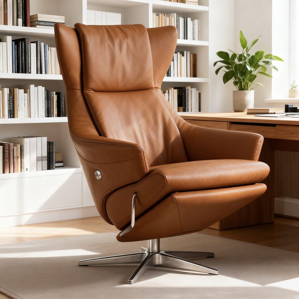 เก้าอี้ปรับเอนหนังสไตล์มินิมอลสุดหรู พร้อมช่องเสียบ USB ชาร์จไฟ ดีไซน์เป็นมิตรกับสิ่งแวดล้อม ทนทาน โครงเหล็กหมุนได้ เหมาะสำหรับห้องนั่งเล่นและห้องนอน