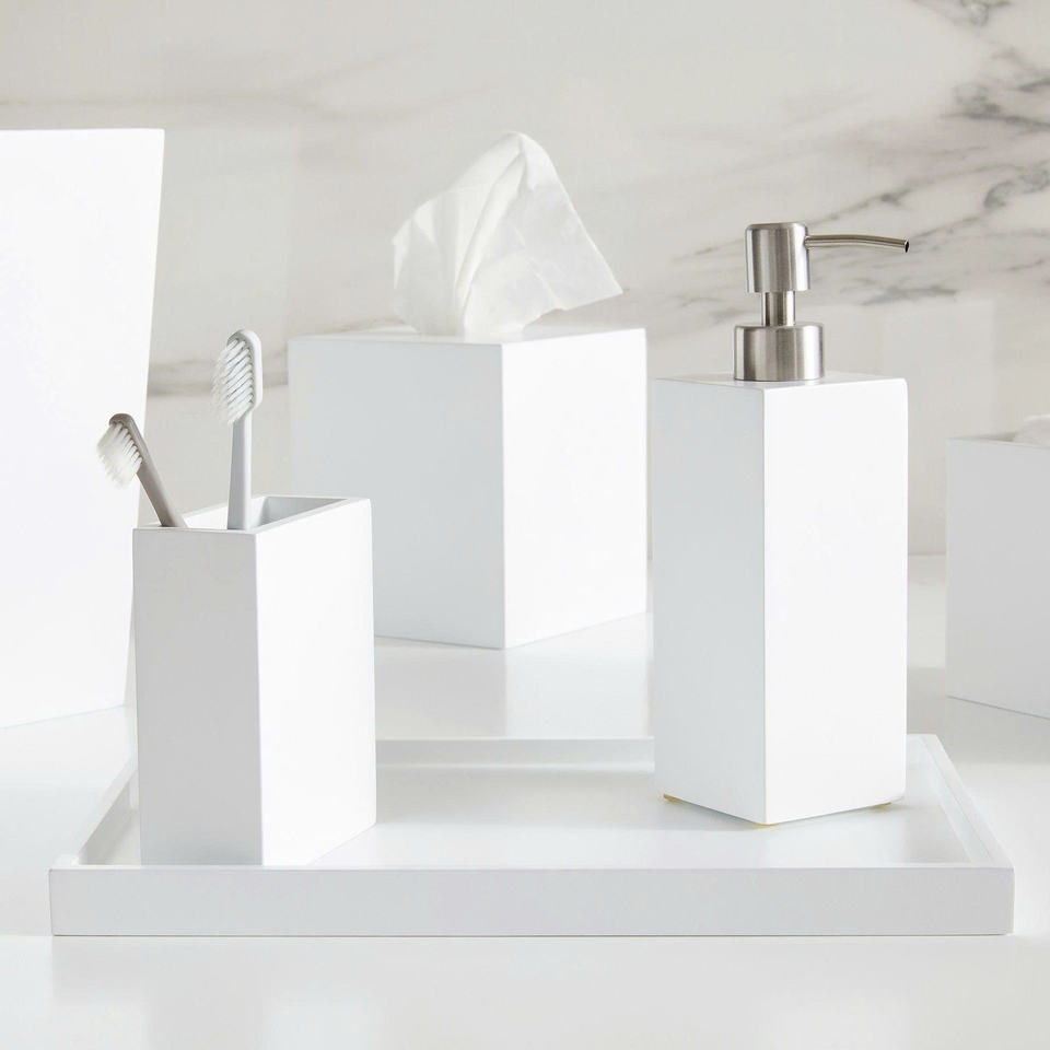 ชุดอุปกรณ์ห้องน้ำหรูหราสไตล์มินิมอลเคลือบเงาพรีเมียม สีขาวบริสุทธิ์ สำหรับโรงแรม ร้านอาหาร วิลล่า และโฮมสเตย์