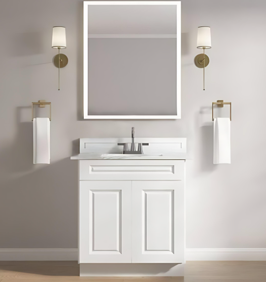ตู้ห้องน้ำแบบแขวนผนังเดี่ยว ขนาด 60 นิ้ว พร้อมอ่างล้างหน้าและกระจก ดีไซน์หรูหราทันสมัย
