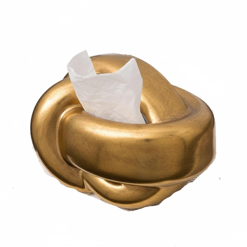 Luxury Modern Antique Gold Metal Knot Tissue Box Cover Creative Decorative Napkin Holder For Home Living Room Dining Table Decor