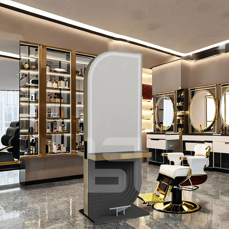 เฟอร์นิเจอร์สำหรับร้านตัดผมและร้านเสริมสวยทำจากไม้สถานีกระจกตกแต่งทันสมัยหรูหรา