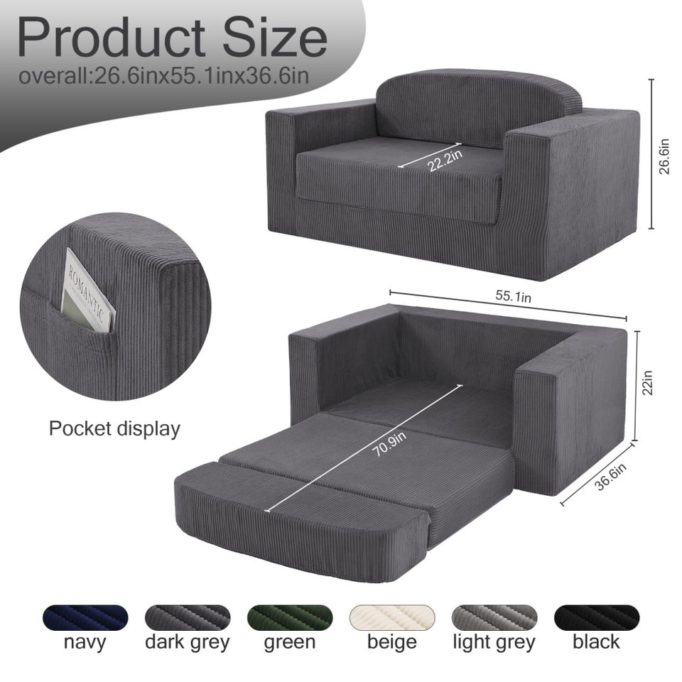 โซฟาปรับนอนได้แบบขยายได้สองที่นั่ง ดีไซน์หรูหราทันสมัย บรรจุภัณฑ์สุญญากาศ สำหรับเฟอร์นิเจอร์ Airbnb ขายส่งจากจีน
