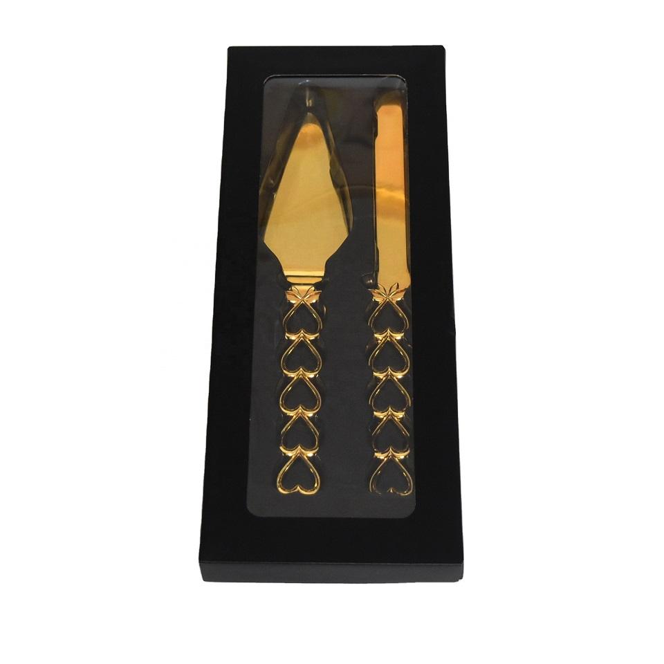 ชุดช้อนส้อมสแตนเลสสตีลหรูหราทันสมัย ปลอดภัยสำหรับอาหาร พร้อมที่ตักเค้ก ด้ามจับรูปหัวใจ ดีไซน์สวยงาม