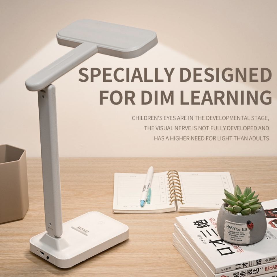 โคมไฟอ่านหนังสือดีไซน์หรูหราทันสมัย พร้อมพอร์ต USB สำหรับใช้ในบ้าน 3 สี ปรับความสว่างได้ โคมไฟ LED สำหรับอ่านหนังสือแบบชาร์จไฟได้ สีขาว สำหรับสำนักงาน