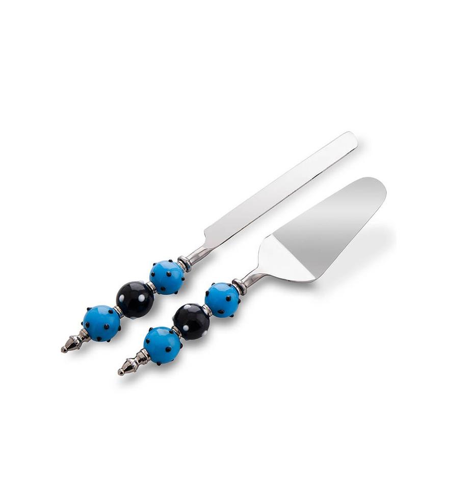 ชุดมีดและที่วางเค้กพร้อมที่จับไม้สำหรับตกแต่งบนโต๊ะวัสดุโลหะทนทานดีไซน์ทันสมัยหรูหรา